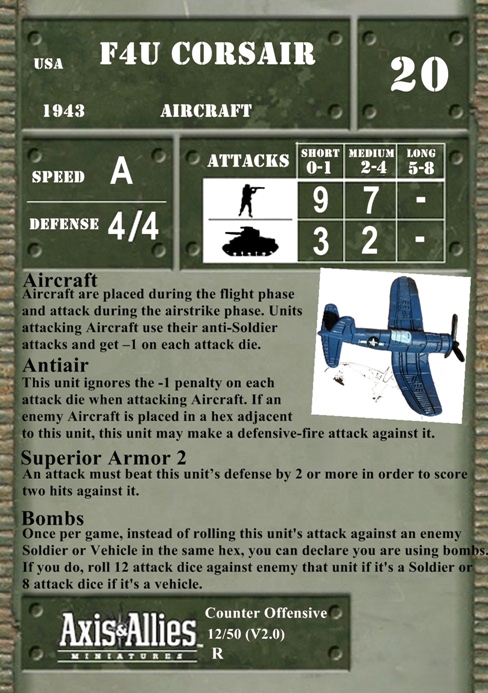 Aircraft are placed during the flight phase and attack during the airstrike phase. Units attacking Aircraft use their anti-Soldier attacks and get –1 on each attack die.