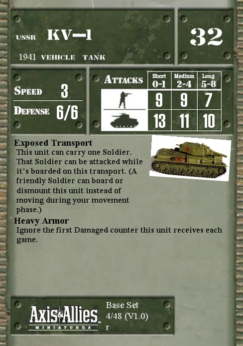 This unit can carry one Soldier. That Soldier can be attacked while it’s boarded on this transport. (A friendly Soldier can board or dismount this unit instead of moving during your movement phase.)