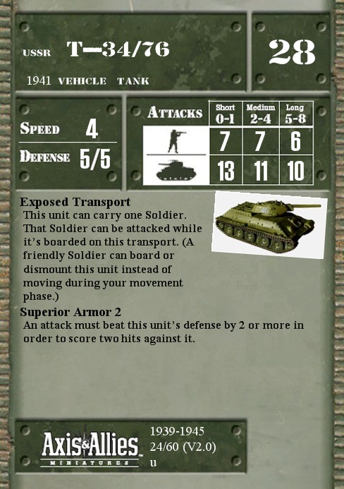 This unit can carry one Soldier. That Soldier can be attacked while it’s boarded on this transport. (A friendly Soldier can board or dismount this unit instead of moving during your movement phase.)