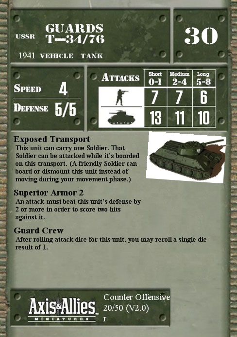 This unit can carry one Soldier. That Soldier can be attacked while it’s boarded on this transport. (A friendly Soldier can board or dismount this unit instead of moving during your movement phase.)