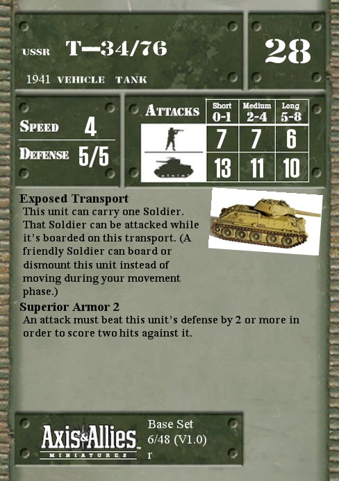 This unit can carry one Soldier. That Soldier can be attacked while it’s boarded on this transport. (A friendly Soldier can board or dismount this unit instead of moving during your movement phase.)