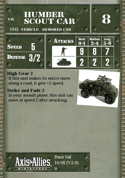 A: You can use High Gear with Strike & Fade. For example; a Humber could move 5 hexes along a road after it shoots using a combination of Strike and Fade 2, Road Bonus and High Gear 2.
