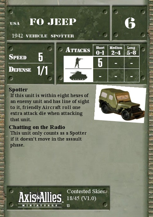 If this unit is within eight hexes of an enemy unit and has line of sight to it, friendly Aircraft roll one extra attack die when attacking that unit.