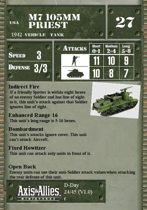 Note: The 11/12/2009 Rules Update changed the text of this SA and specifies that the rear defense of a unit must be targeted. The US M7 105mm Priest and Soviet Veteran SU-76M from the Counter Offensive / number 10 booster set have the updated text for this special ability. It reads as; Enemy units can use their anti-Soldier attack values when attacking the rear defense of this unit.