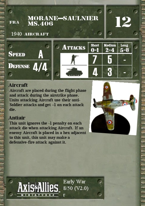 Aircraft are placed during the flight phase and attack during the airstrike phase. Units attacking Aircraft use their anti-Soldier attacks and get –1 on each attack die.