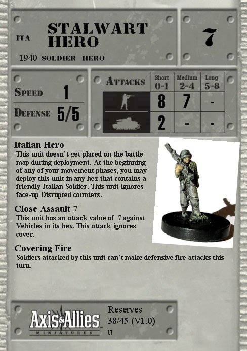 This unit doesn’t get placed on the battle map during deployment. At the beginning of any of your movement phases, you may deploy this unit in any hex that contains a friendly Italian Soldier. This unit ignores face-up Disrupted counters.