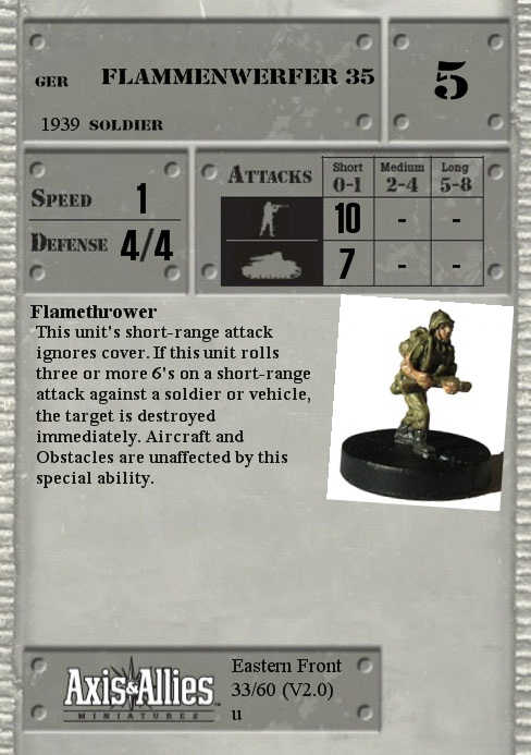 This unit's short-range attack ignores cover. If this unit rolls three or more 6's on a short-range attack against a soldier or vehicle, the target is destroyed immediately. Aircraft and Obstacles are unaffected by this special ability.