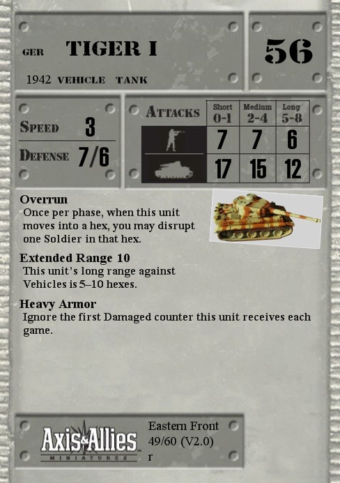 A: The Tiger I doesn't need to stop in a hex after disrupting a Soldier there, but the text specifies "once per phase." Only one Soldier can be disrupted, no matter how many hexes the Tiger tank enters.