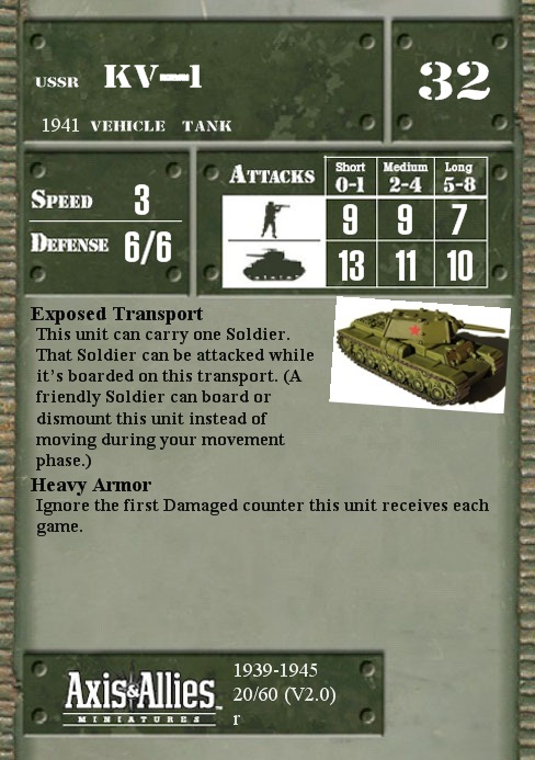 This unit can carry one Soldier. That Soldier can be attacked while it’s boarded on this transport. (A friendly Soldier can board or dismount this unit instead of moving during your movement phase.)