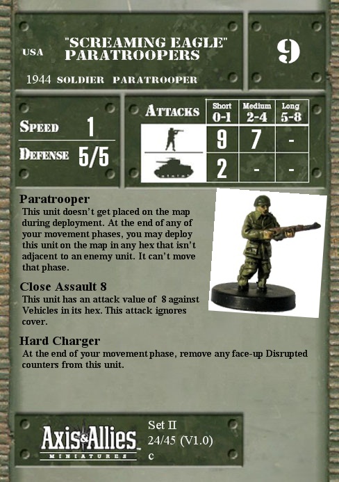 A: Dead. If you want your paratroopers to count as "on the map" for a points-based victory, the pieces need to be physically on the map when the game ends. Under normal conditions, this shouldn't be any difficulty. If for some reason you haven't deployed a paratrooper until turn 10, you can just place it in a quiet corner of the map during your turn 10 Movement phase to claim its VP value. In a timed tournament game, however, this will put a little more pressure on players to get their paratroopers into the mix in a timely fashion.
