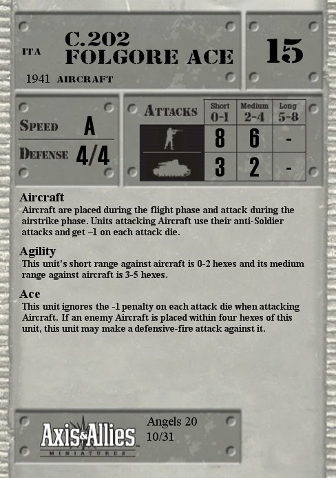 Aircraft are placed during the flight phase and attack during the airstrike phase. Units attacking Aircraft use their anti-Soldier attacks and get –1 on each attack die.