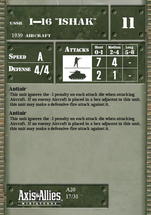 This unit ignores the -1 penalty on each attack die when attacking Aircraft. If an enemy Aircraft is placed in a hex adjacent to this unit, this unit may make a defensive-fire attack against it.