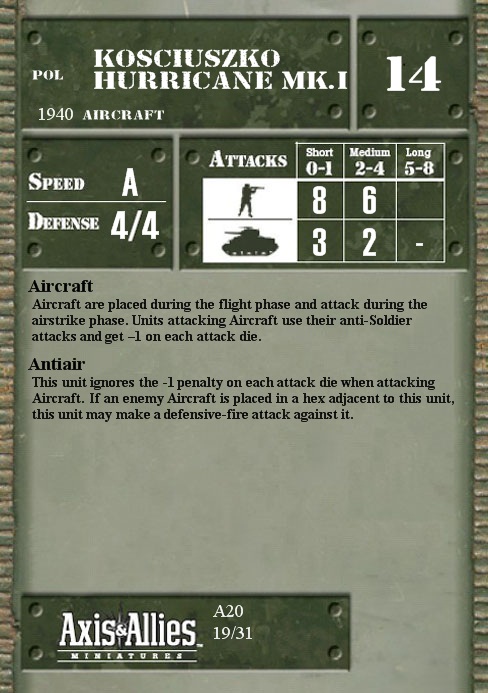 Aircraft are placed during the flight phase and attack during the airstrike phase. Units attacking Aircraft use their anti-Soldier attacks and get –1 on each attack die.