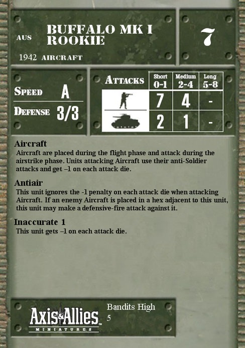 Aircraft are placed during the flight phase and attack during the airstrike phase. Units attacking Aircraft use their anti-Soldier attacks and get –1 on each attack die.