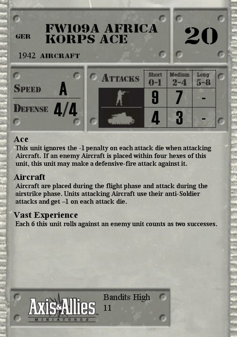 This unit ignores the -1 penalty on each attack die when attacking Aircraft. If an enemy Aircraft is placed within four hexes of this unit, this unit may make a defensive-fire attack against it.