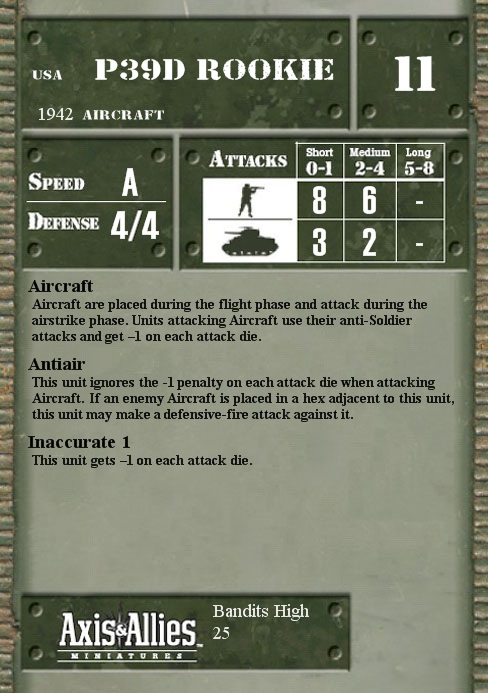Aircraft are placed during the flight phase and attack during the airstrike phase. Units attacking Aircraft use their anti-Soldier attacks and get –1 on each attack die.